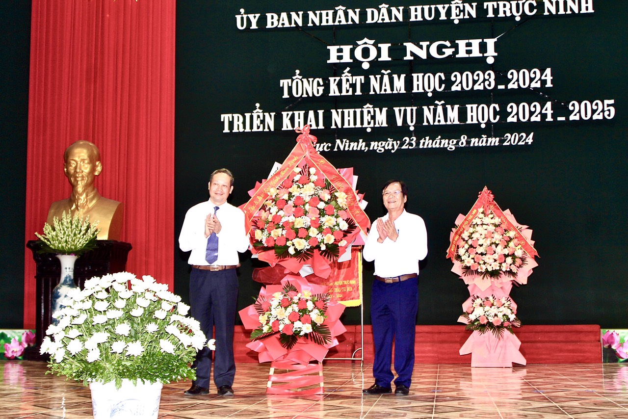 Ngành Giáo dục và Đào tạo (GD&ĐT) huyện Trực Ninh, tỉnh Nam Định vừa tổ chức hội nghị tổng kết năm học 2023-2024, triển khai nhiệm vụ năm học 2024-2025. Nhà giáo Ưu tú Cao Xuân Hùng, Giám đốc Sở GD&ĐT tỉnh Nam Định về dự, phát biểu chỉ đạo và tặng hoa chúc mừng.