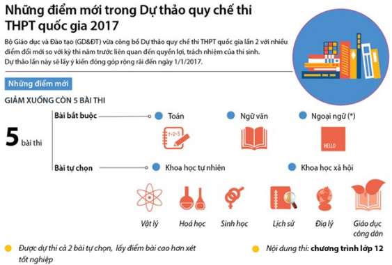 Bộ Giáo dục và Đào tạo vừa công bố Dự thảo quy chế thi Trung học phổ thông quốc gia lần 2 với nhiều điểm đổi mới so với kỳ thi năm trước liên quan đến quyền lợi, trách nhiệm của thí sinh. Dự thảo lần này sẽ lấy ý kiến đóng góp rộng rãi đến ngày 1/1/2017.