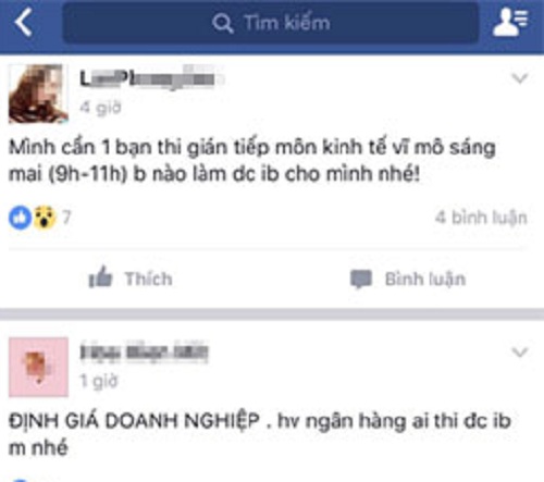 Tìm kiếm cụm từ “học hộ, thi hộ”, trong số kết quả trả về có hàng chục hội nhóm, diễn đàn Facebook, kín có, mở có, phục vụ “thị trường” này. Có cung ắt có cầu, thị trường này luôn sôi động và rất tấp nập, có hội nhóm thu hút tới vài chục ngàn thành viên.