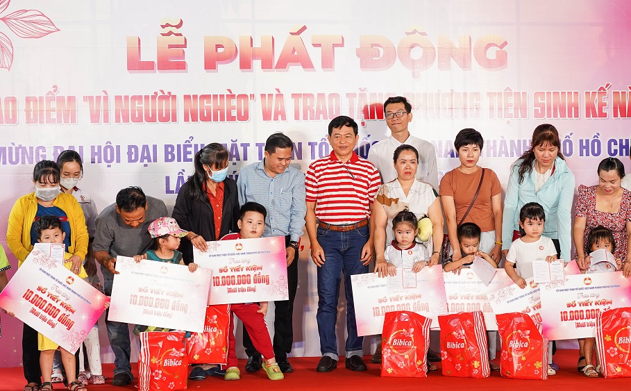 Hưởng ứng tháng cao điểm “vì người nghèo” năm 2023, MTTQVN TP Hồ Chí Minh đã trao tặng 97 phương tiện sinh kế, học bổng, sổ tiết kiệm cho học sinh, trẻ mồ côi, gia đình khó khăn.