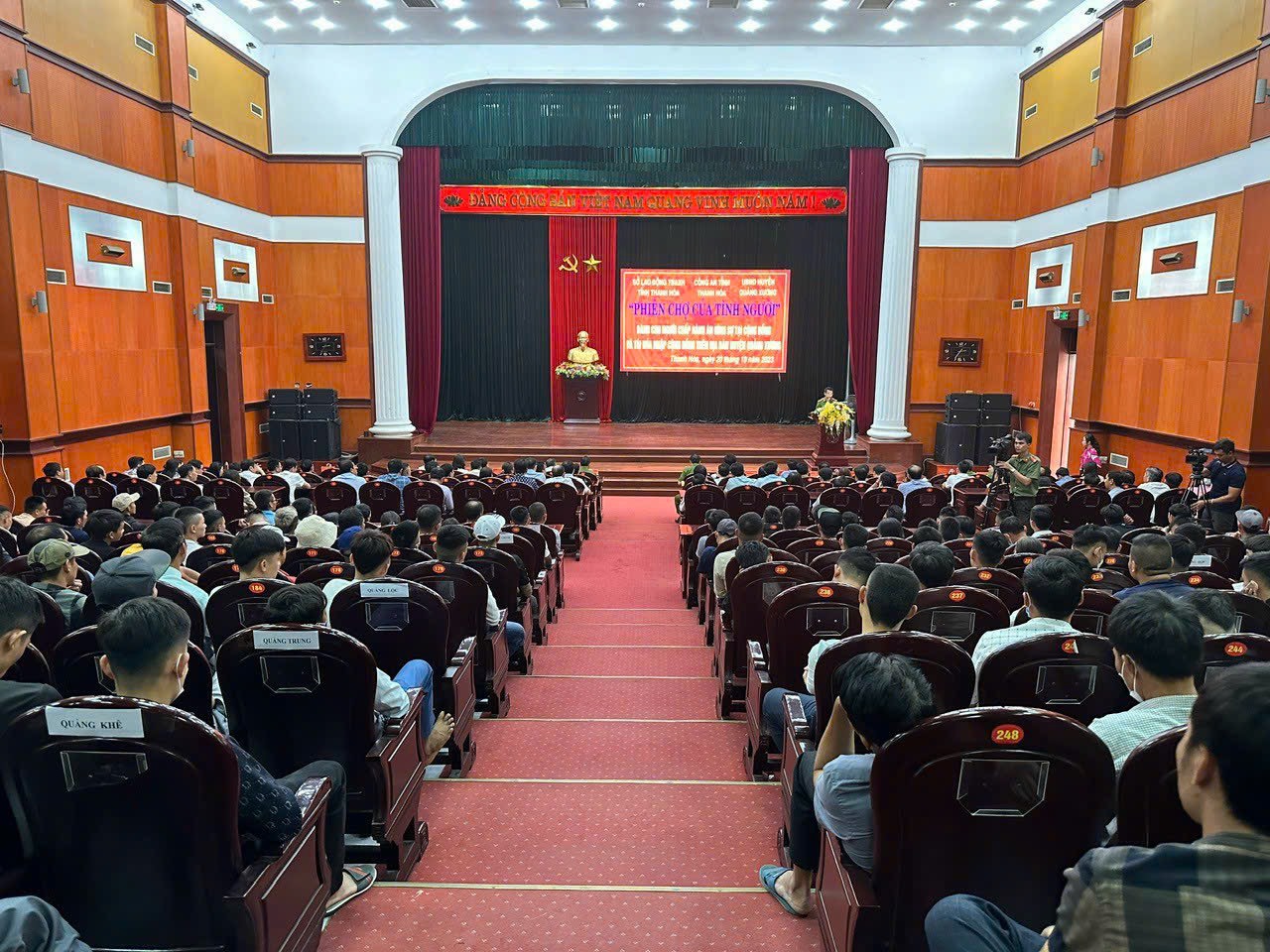 Chiều 20/10, Công an tỉnh Thanh Hóa phối hợp với Sở Lao động - Thương binh và xã hội (LĐTB-XH), UBND huyện Quảng Xương tổ chức 'Phiên chợ của tình người' dành cho người chấp hành án hình sự tại cộng đồng và người tái hoà nhập cộng đồng trên địa bàn huyện Quảng Xương.