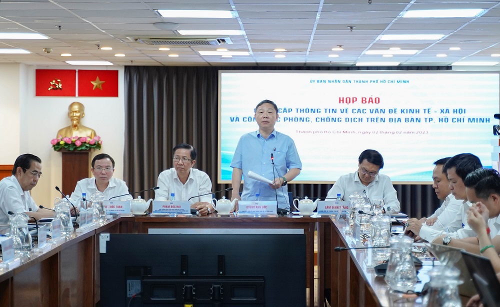 Chiều 2/2, UBND TP Hồ Chí Minh tổ chức họp báo cung cấp thông tin tình hình kinh tế - xã hội tháng 1/2023 và công tác phòng, chống dịch trên địa bàn. Chủ trì họp báo có Phó Chủ tịch UBND Thành phố Dương Anh Đức; Phó trưởng Ban Tuyên giáo Thành ủy Phạm Đức Hải; Giám đốc Sở Thông tin và Truyền thông Lâm Đình Thắng; Chánh Văn phòng (người Phát ngôn) UBND Thành phố Đặng Quốc Toàn.