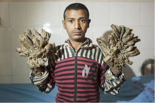 Sinh ra vốn bình thường, song bỗng một ngày bàn tay của Abul Bajandardị dạng, với những khối u cứng, mọc tua tủa như rễ cây.
