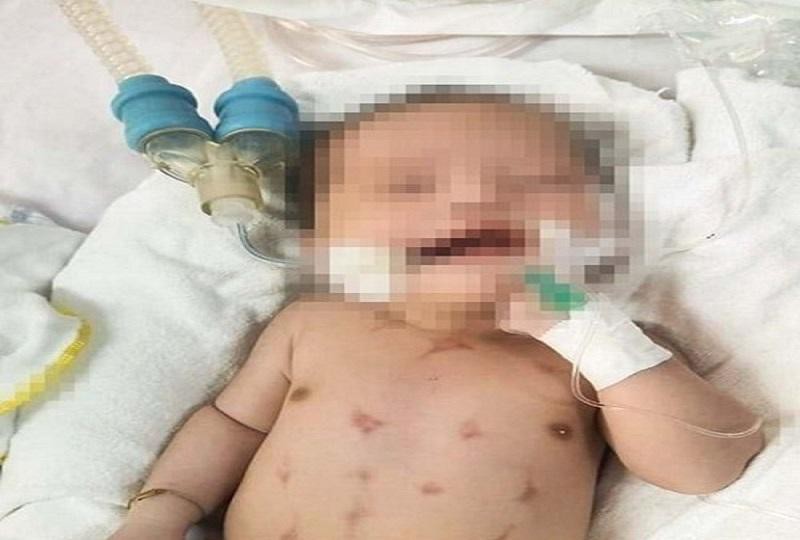 Chữa sài đẹn theo phương pháp dân gian, bé sơ sinh 16 ngày tuổi ở Hà Tĩnh phải nhập viện trong tình trạng tím tái, khó thở, bú kém.