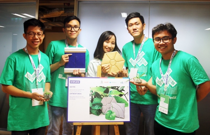 Lạc Dân Hy và nhóm sinh viên Đại học Bách Khoa (ĐHQG TP.HCM) đã “hô biến” rác thải nhựa thành gạch nhẹ đem lại giá trị kinh tế.