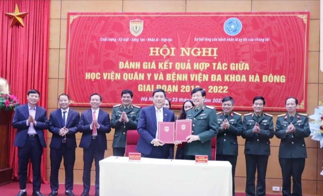 Chiều 23/12, tại Hà Nội, Học viện Quân Y (Bộ Quốc phòng) và Bệnh viện đa khoa Hà Đông (Sở Y tế Hà Nội) tổ chức hội nghị đánh giá kết quả hợp tác giữa Học viện Quân Y và Bệnh viện đa khoa Hà Đông giai đoạn 2016-2022 .