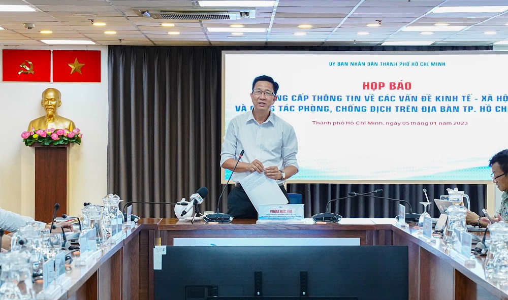 Chiều 5/1, Ban chỉ đạo phòng, chống dịch COVID-19 và phục hồi kinh tế TP.HCM họp báo cung cấp thông tin về các vấn đề kinh tế - xã hội và công tác phòng chống dịch trên địa bàn. Ông Phạm Đức Hải - Phó trưởng Ban Tuyên giáo Thành ủy, Phó trưởng Ban chỉ đạo chủ trì cuộc họp.