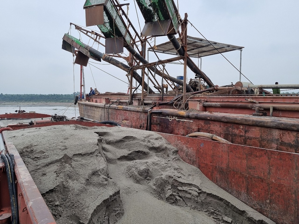 Ngày 15/11, một số cơ quan báo chí thông tin, Công an tỉnh Phú Thọ phối hợp cùng Công an huyện Ba Vì (Hà Nội), tiến hành kiểm tra phát hiện 2 phương tiện khai thác cát, nghi khai thác trái phép trên sông Hồng thuộc địa bàn xã Cổ Đô (huyện Ba Vì, Hà Nội).