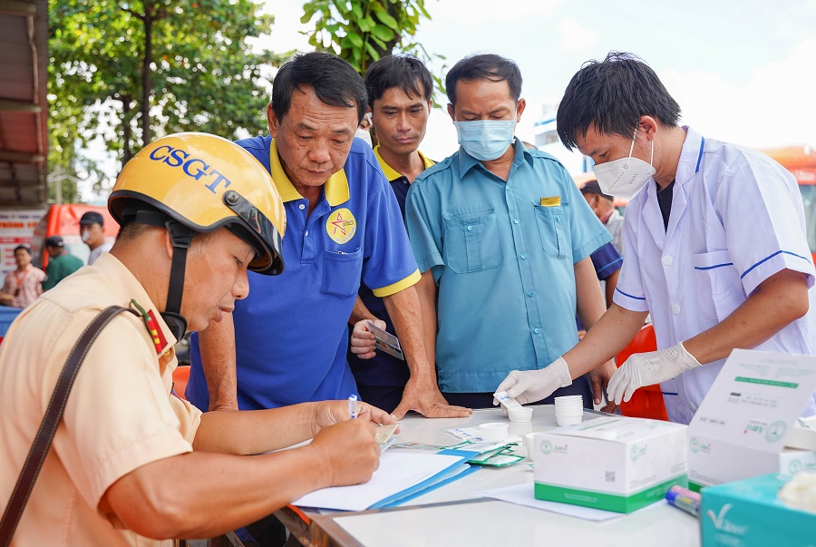 Ngày 8/8, Đội CSGT An Sương (Phòng CSGT đường bộ - đường sắt, Công an TP Hồ Chí Minh) phối hợp Đội Thanh tra giao thông số 7 (Sở GTVT TP Hồ Chí Minh) và Công an huyện Hóc Môn kiểm tra ma túy các lái xe khi xuất bến tại Bến xe An Sương.