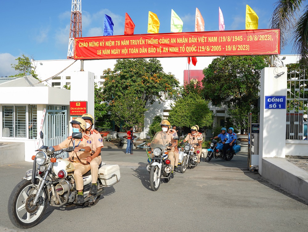 Ngày 15/8, Phòng CSGT Đường bộ - Đường sắt (PC08, Công an TP Hồ Chí Minh) phối hợp cùng Công an quận Bình Tân, Công an huyện Bình Chánh tổ chức Lễ ra quân cao điểm tổng kiểm soát xe ô tô kinh doanh vận tải hành khách, vận tải hàng hóa bằng container, kéo giảm TNGT trên địa bàn.
