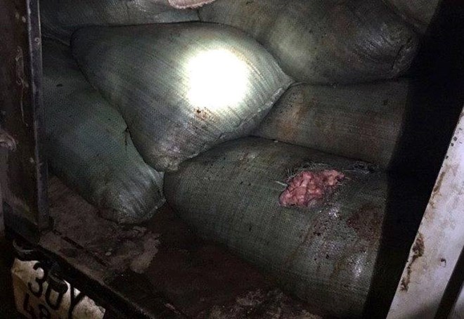 Nhận thấy chiếc xe tải có nhiều biểu hiện nghi vấn, cảnh sát đã tiến hành kiểm tra thì phát hiện ra trên thùng xe chở tới hơn 600kg mỡ bò đã bốc mùi hôi thối.