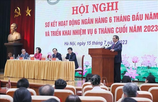 Sáng 15/7, Thủ tướng Chính phủ Phạm Minh Chính đã dự Hội nghị sơ kết hoạt động ngân hàng 6 tháng đầu năm và triển khai nhiệm vụ 6 tháng cuối năm 2023 do Ngân hàng Nhà nước Việt Nam tổ chức theo hình thức trực tuyến.