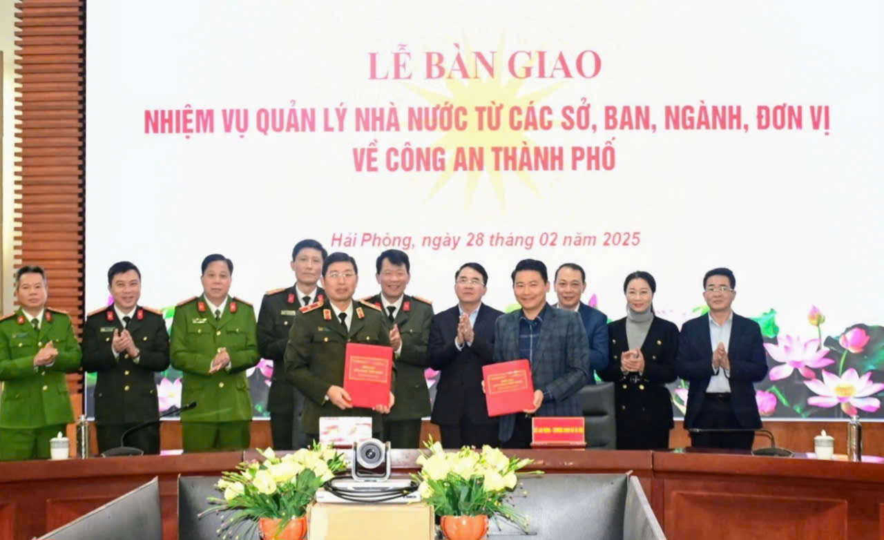 Sáng 28/2, TP.Hải Phòng tổ chức lễ bàn giao nhiệm vụ quản lý Nhà nước từ các sở, ngành, đơn vị về Công an thành phố.