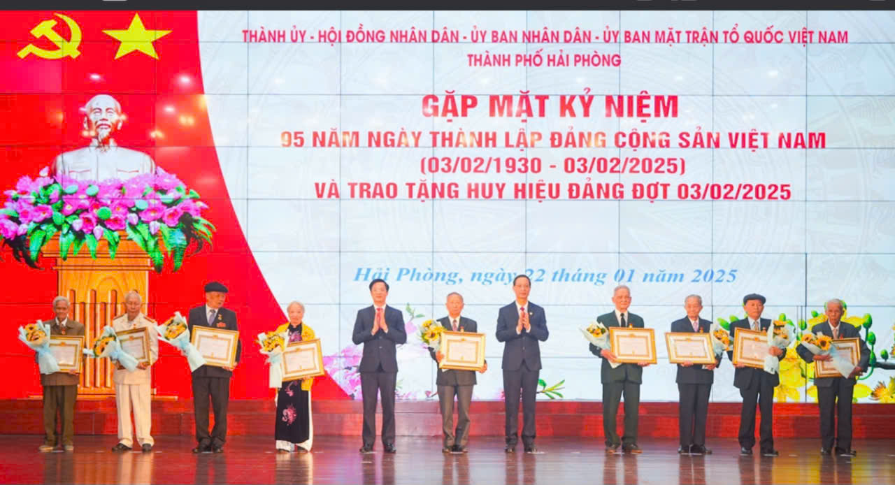 Sáng 22/1, Thành uỷ Hải Phòng long trọng tổ chức chương trình gặp mặt Kỷ niệm 95 năm ngày thành lập Đảng Cộng sản Việt Nam (3/2/1030 - 3/2/2025) và Trao tặng Huy hiệu Đảng cho 2.516 đảng viên.