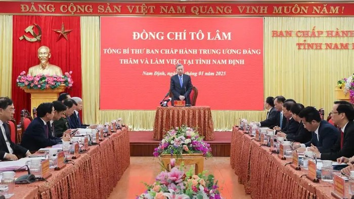 Ngày 16/1, tại Nam Định, Tổng Bí thư Tô Lâm và Đoàn công tác của Trung ương đã làm việc với Ban Chấp hành Đảng bộ tỉnh Nam Định về tình hình thực hiện nhiệm vụ công tác năm 2024 và phương hướng nhiệm vụ năm 2025.