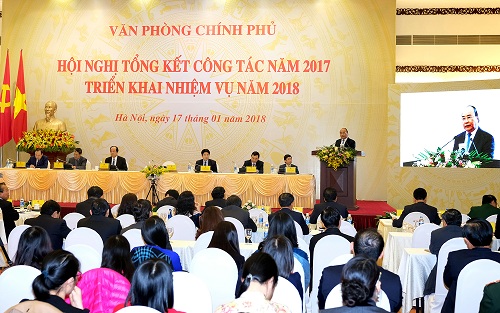 Chiều nay (17/1), dự Hội nghị tổng kết năm 2017 và triển khai nhiệm vụ 2018 của Văn phòng Chính phủ (VPCP), Thủ tướng mong muốn VPCP hãy lan tỏa phong cách làm việc tận tụy, trách nhiệm, lan tỏa tinh thần làm việc quên mình, trung thực, lan tỏa tinh thần sáng tạo, liêm chính… và hơn ai hết, VPCP hãy thực hiện và lan tỏa phương châm “10 chữ” mà Chính phủ đã đưa ra.