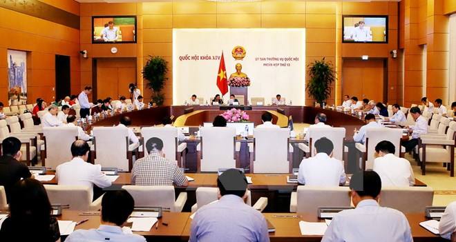 Tiếp tục chương trình Phiên họp thứ 13, sáng 15/8, Ủy ban Thường vụ Quốc hội tiến hành giám sát chuyên đề “Việc thực hiện chính sách, pháp luật về đầu tư và khai thác các công trình giao thông theo hình thức hợp đồng xây dựng-kinh doanh-chuyển giao (BOT).” Phó Chủ tịch Quốc hội Phùng Quốc Hiển điều hành phiên họp.