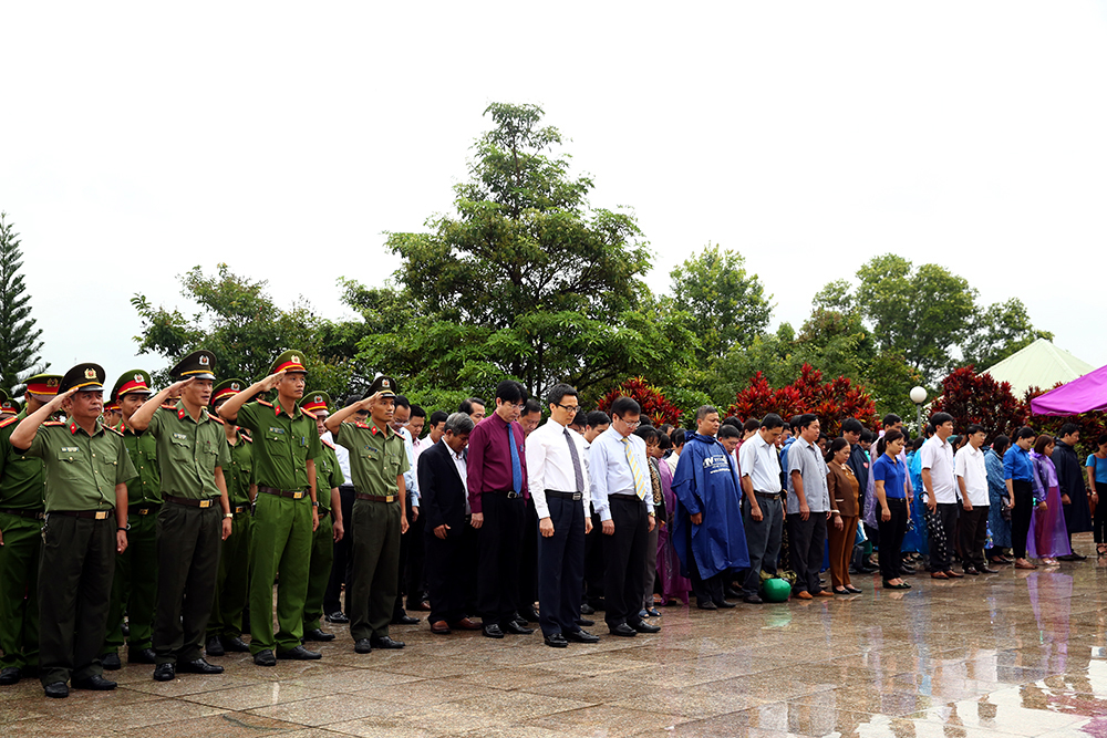 Sáng 24/7, Phó Thủ tướng Vũ Đức Đam và đoàn công tác Chính phủ đã dâng hương tưởng niệm các Anh hùng, liệt sĩ tại Nghĩa trang Liệt sĩ Ngọc Hồi, Kon Tum tại ngã ba biên giới Việt Nam-Lào-Campuchia.