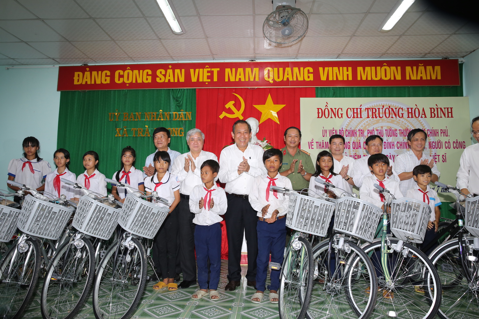 Chiều 24/7, nhân chuyến công tác tại tỉnh Quảng Ngãi, Uỷ viên Bộ Chính trị, Phó Thủ tướng Thường trực Chính phủ Trương Hoà Bình đã thăm, tặng quà các gia đình chính sách, học sinh hiếu học huyện miền núi Tây Trà, tỉnh Quảng Ngãi.