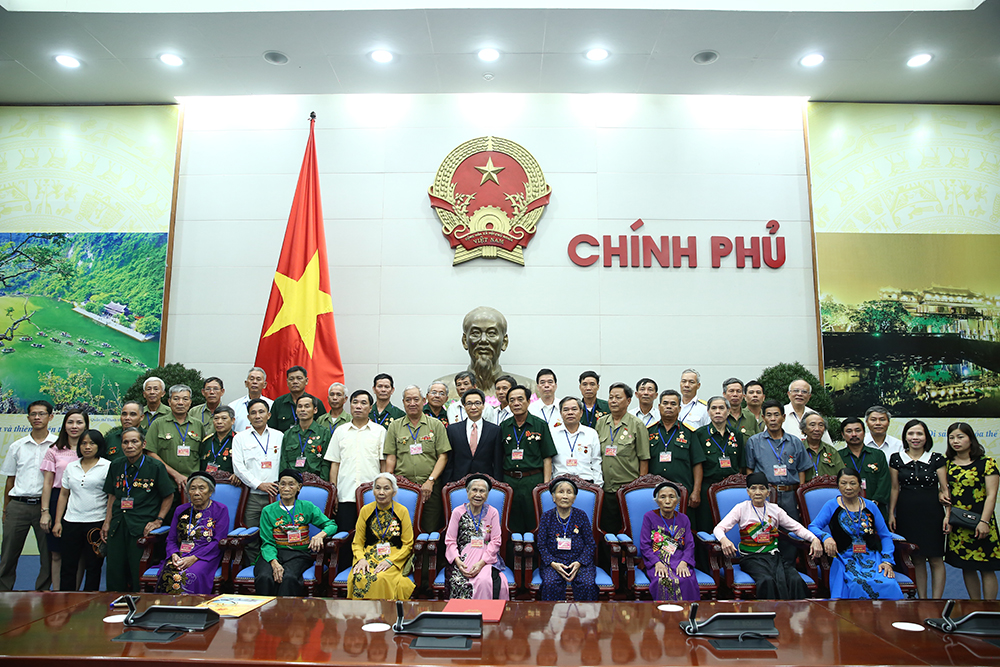 Nhân kỷ niệm 70 năm ngày Thương binh - Liệt sĩ, chiều 16/6, tại trụ sở Chính phủ, Phó Thủ tướng Vũ Đức Đam tiếp Đoàn đại biểu con liệt sĩ huyện Đại Lộc, tỉnh Quảng Nam.