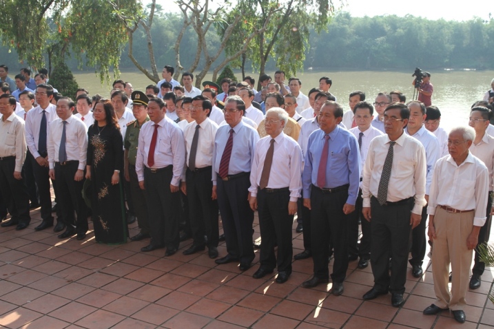 Tổng Bí thư Nguyễn Phú Trọng, nguyên Tổng Bí thư Nông Đức Mạnh, nguyên Chủ tịch nước Trương Tấn Sang, Phó Thủ tướng Thường trực Chính phủ Trương Hòa Bình đã dâng hương, dâng hoa tưởng niệm đồng chí Tổng Bí thư Lê Duẩn.