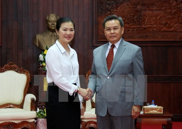 Trong khuôn khổ chuyến thăm và làm việc tại Lào từ ngày 5-8/4, ngày 7/4 tại thủ đô Vientiane, Đoàn đại biểu Ủy ban Trung ương Mặt trận Tổ quốc Việt Nam do bà Trương Thị Ngọc Ánh, Phó Chủ tịch Ủy ban Trung ương Mặt trận Tổ quốc dẫn đầu, đã được ông Saysomphone Phomvihane, Ủy viên Bộ Chính trị, Chủ tịch Ủy ban Trung ương Mặt trận Lào Xây dựng đất nước tiếp thân mật.