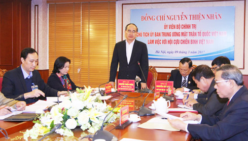 Chiều 9/3, tại Hà Nội, đồng chí Nguyễn Thiện Nhân Ủy viên Bộ Chính trị, Chủ tịch Ủy ban Trung ương Mặt trận Tổ quốc Việt Nam đã làm việc với Hội Cựu chiến binh Việt Nam.