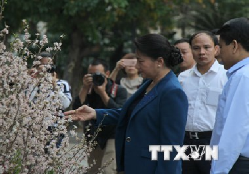 Chiều 13/3, Ủy viên Bộ Chính trị, Chủ tịch Quốc hội Nguyễn Thị Kim Ngân đã đến tham quan triển lãm hoa anh đào tại khu vực vườn hoa Tượng đài Lý Thái Tổ Hà Nội.