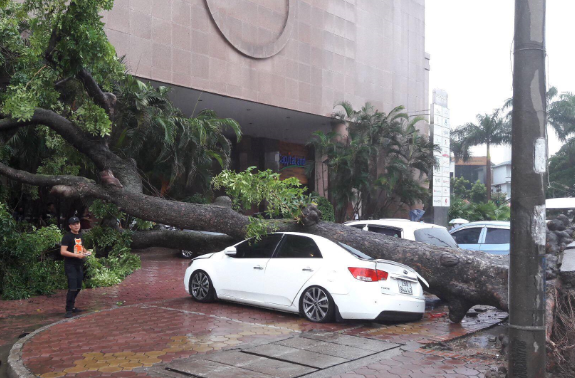 HOANHAP.VN - Vào lúc 11h58 ngày 19/8 trước cửa khách sạn Hà Nội Towers (49 Hai Bà Trưng, Hà Nội), một chiếc xe Kia Forte đã bị cây to đè bẹp.