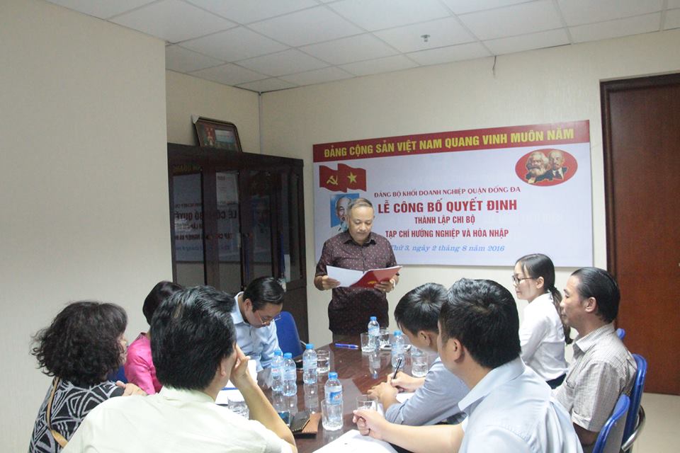 HOANHAP.VN -Căn cứ vào quyết định số 12 QĐ/DUK ngày 01/06/2016 của Đảng ủy khối doanh nghiệp về việc thành lập Chi bộ Tạp chí Hướng nghiệp và Hòa nhập. Hôm nay (2/8), Đảng ủy khối và Chi bộ Tạp chí Hướng nghiệp và Hòa nhập tổ chức lễ công bố quyết định thành lập Chi bộ.