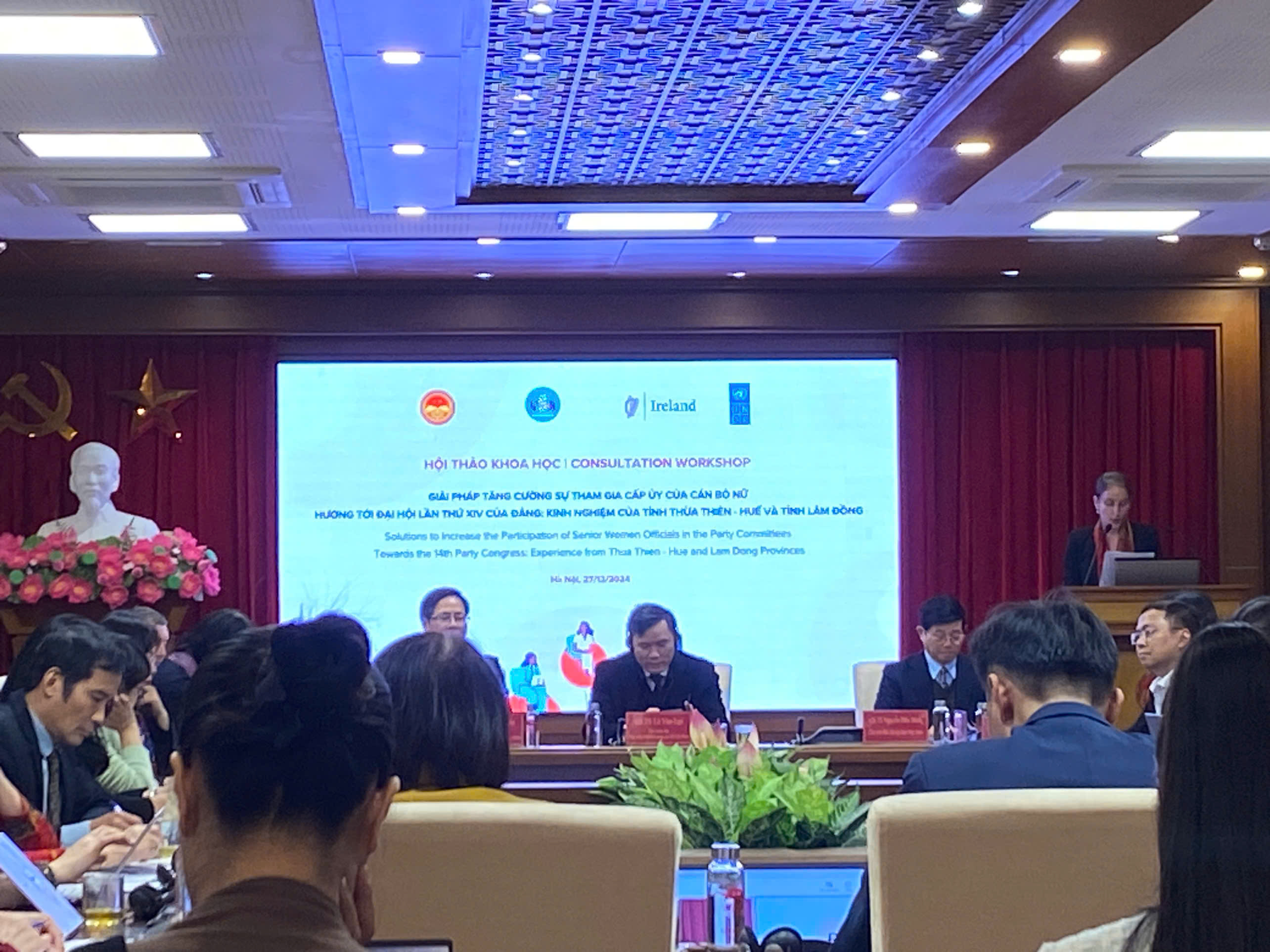 Chiều ngày 27/12, Học viện Chính trị quốc gia Hồ Chí Minh phối hợp với Đại sứ quán Ireland và Chương trình Phát triển của Liên hợp quốc (UNDP) tổ chức Hội nghị tư vấn Giải pháp tăng cường sự tham gia cấp ủy của cán bộ nữ hướng tới Đại hội lần thứ XIV của Đảng, kinh nghiệm của tỉnh Thừa Thiên Huế và tỉnh Lâm Đồng.