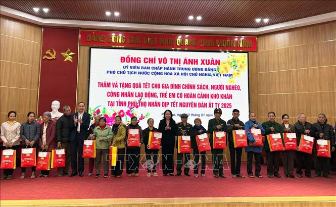 Ngày 10/1/2025, Phó Chủ tịch nước Võ Thị Ánh Xuân đã đến thăm, chúc Tết cán bộ, chiến sĩ Bộ Chỉ huy Quân sự tỉnh Phú Thọ; tặng quà người có công, gia đình chính sách nhân dịp Xuân Ất Tỵ 2025.