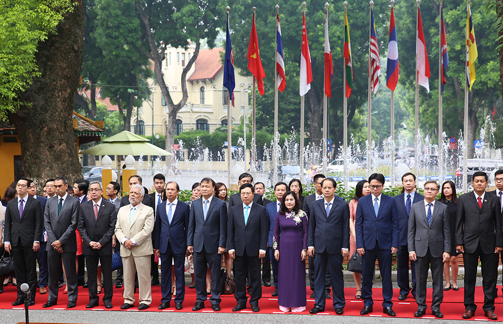 Ngày 2/8, bên lề Hội nghị Bộ trưởng Ngoại giao ASEAN lần thứ 51 tại Singapore, Phó Thủ tướng, Bộ trưởng Ngoại giao Phạm Bình Minh đã có các cuộc gặp Ngoại trưởng Nhật Bản Taro Kono; Bộ trưởng Ngoại giao Iran Mohammad Javad Zarif.