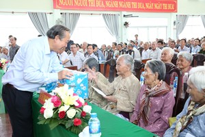Thăm, tặng quà các Mẹ Việt Nam anh hùng, các gia đình chính sách tại Tiền Giang, Phó Thủ tướng Trương Hòa Bình bày tỏ vui mừng khi được biết trên 98% hộ gia đình người có công của tỉnh có mức sống cao hơn mức trung bình của người dân địa phương.