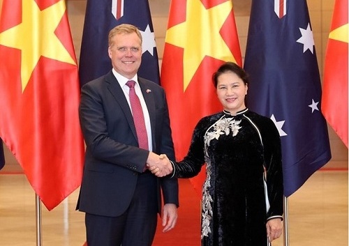 HOANHAP.VN - Chiều ngày 23/7, tại Nhà Quốc hội, Chủ tịch Quốc hội Nguyễn Thị Kim Ngân chủ trì Lễ đón và hội đàm với Ngài Tony Smith, Chủ tịch Hạ Viện Australia thăm chính thức Việt Nam từ ngày 23-25/7 nhằm tăng cường hơn nữa quan hệ Đối tác Chiến lược giữa Australia và Việt Nam đồng thời kỷ niệm 45 năm ngày thiết lập quan hệ ngoại giao giữa hai nước.