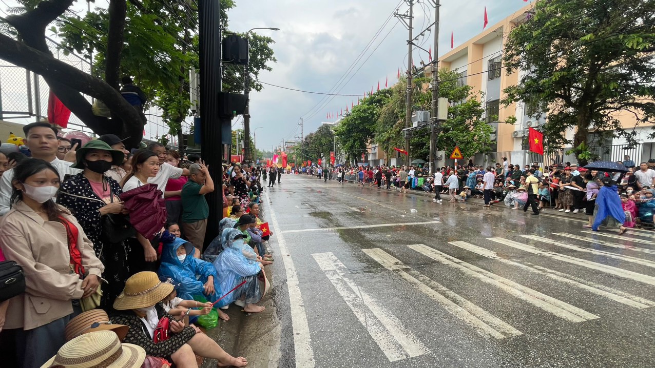 Sáng 7/5, hàng nghìn người dân đứng dưới mưa để chứng kiến lễ kỷ niệm 70 năm chiến thắng Điện Biên Phủ. Cơn mưa nặng hạt không làm ảnh hưởng nhuệ khí ngút trời của lực lượng diễu binh cũng như người dân Điện Biên và du khách.