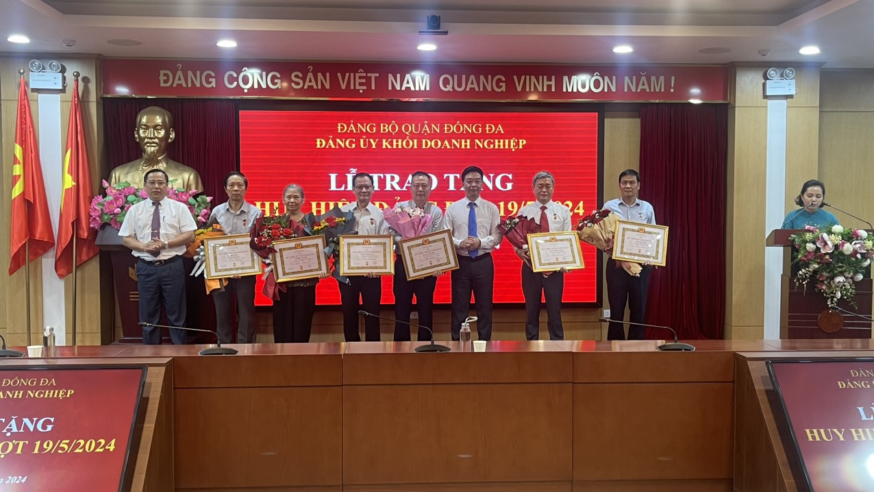 Sáng nay (15/5), Đảng Ủy Khối Doanh nghiệp quận Đống Đa trao tặng Huy hiệu 55 - 45 - 30 tuổi Đảng cho đảng viên nhân dịp 19/5 (kỷ niệm Ngày sinh Chủ tịch Hồ Chí Minh).