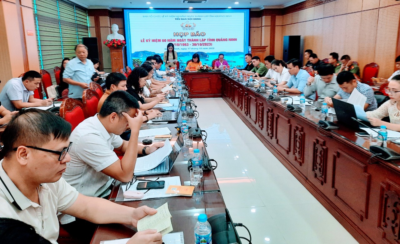 Ngày 17/10, UBND tỉnh Quảng Ninh họp báo thông tin về Lễ kỷ niệm 60 năm Ngày thành lập tỉnh (30/10/1963-30/10/2023). Theo đó, vào 19h tối ngày 28/10, tại Quảng trường 30/10 TP Hạ Long sẽ diễn ra chương trình nghệ thuật đặc sắc để chào mừng 60 năm xây dựng và phát triển tỉnh. Chương trình có sự tham gia của hàng nghìn người với sự dàn dựng công phu được xâu chuỗi như một giai điệu tự hào.