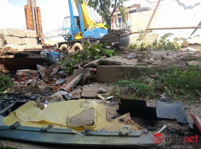 8 khối bê tông chất chồng ở khu vực cầu Chợ Đệm bị đổ sập xuống làm nát vụn 4 xe máy, khiến nhiều người dân gần đó hoảng sợ.
