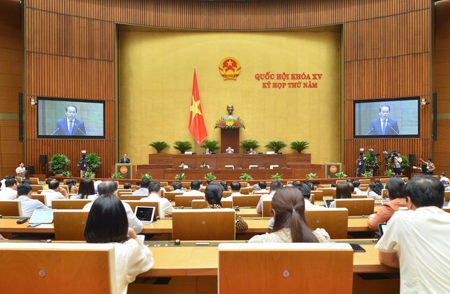 Tiếp tục chương trình Kỳ họp thứ 5, sáng 2/6, Quốc hội biểu quyết thông qua Nghị quyết về Chương trình xây dựng luật, pháp lệnh năm 2024, điều chỉnh Chương trình xây dựng luật, pháp lệnh năm 2023 với tỷ lệ 90,28% đại biểu tham gia biểu quyết tán thành.