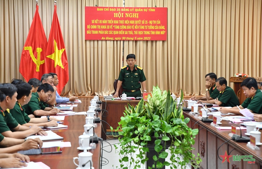 Sáng 30/5, Đảng ủy Quân sự tỉnh An Giang tổ chức Hội nghị sơ kết 5 năm thực hiện Nghị quyết số 35-NQ/TW ngày 22-10-2018 của Bộ Chính trị, Khóa XII về tăng cường bảo vệ nền tảng tư tưởng của Đảng, đấu tranh phản bác các quan điểm sai trái, thù địch trong tình hình mới.