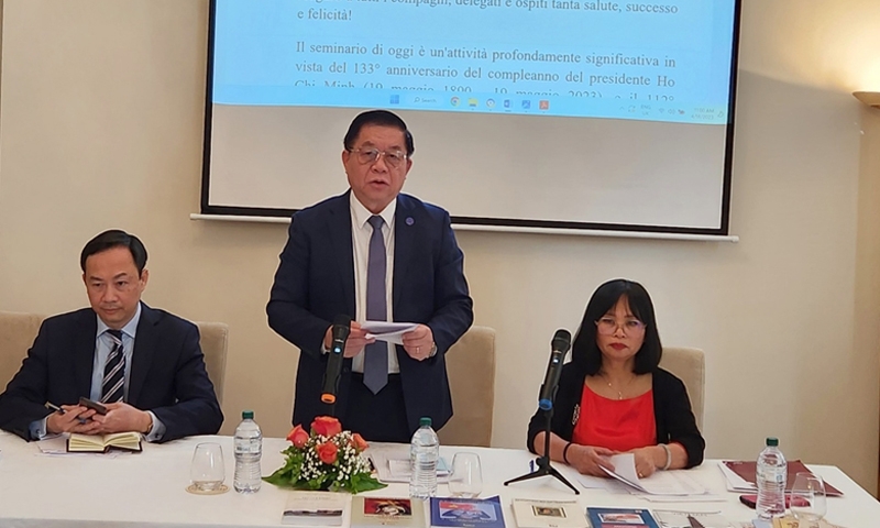 Ngày 18/4, Đại sứ quán Việt Nam tại Italia đã phối hợp với các đơn vị liên quan, chuyên gia, học giả hai nước Việt Nam và Italia tổ chức Hội thảo quốc tế “Quãng đời làm việc của Chủ tịch Hồ Chí Minh tại Italia” tại Thủ đô Roma, Italia.