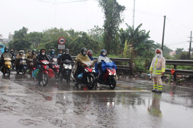 Lực lượng CSGT ứng trực phân luồng giao thông đón người dân từ các tỉnh trở về Hà Nội sau kỳ nghỉ Tết Nguyên đán Nhâm Dần.