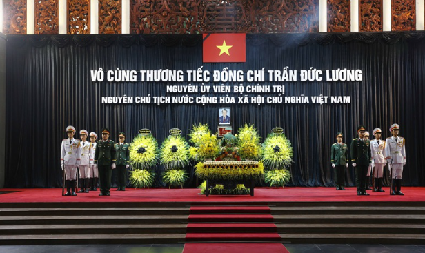 Từ 7h00' hôm nay (24/5), Lễ viếng đồng chí Trần Đức Lương, nguyên Ủy viên Bộ Chính trị, nguyên Chủ tịch nước Cộng hoà xã hội chủ nghĩa Việt Nam, nguyên Chủ tịch Hội đồng Quốc phòng và An ninh, được tổ chức tại Nhà tang lễ Quốc gia, số 5 Trần Thánh Tông, thành phố Hà Nội.
