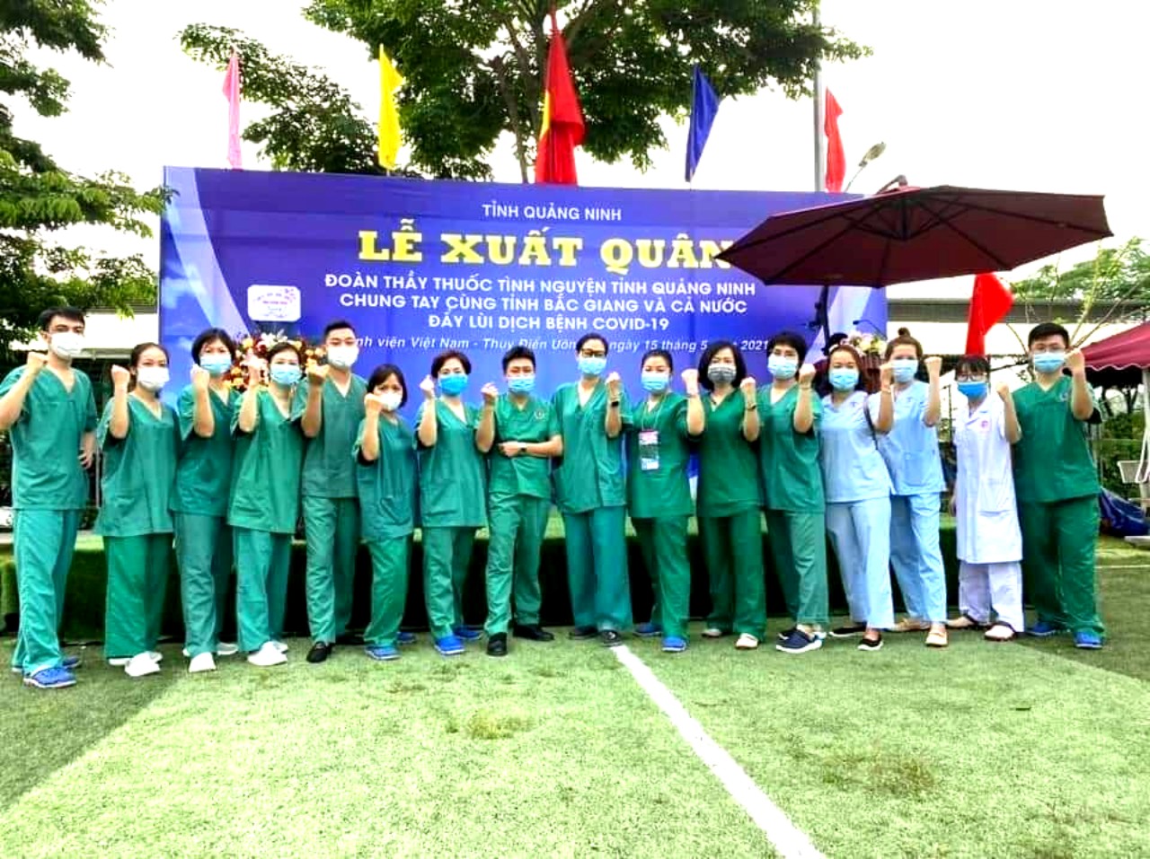 Thực hiện lời kêu gọi của Chính phủ: Toàn dân, toàn quân chung tay phòng, chống dịch Covid -19. Với tinh thần “tương thân tương ái”, “thương người như thể thương thân”, sáng ngày 15/5, tại thành phố Uông Bí, tỉnh Quảng Ninh đã tổ chức lễ xuất quân đưa 200 cán bộ, y, bác sĩ của tỉnh cùng các trang thiết bị hiện đại lên đường hỗ trợ tỉnh Bắc Giang phòng, chống dịch Covid-19.