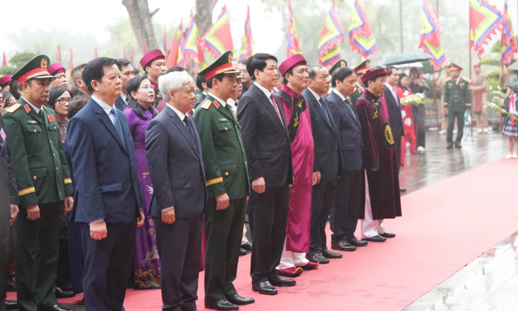 Sáng 7/4 (tức 10/3 năm Ất Tỵ), tại Điện Kính Thiên trên đỉnh núi Nghĩa Lĩnh thuộc Khu Di tích lịch sử Quốc gia đặc biệt Đền Hùng, Đảng bộ, chính quyền và nhân dân tỉnh Phú Thọ thay mặt đồng bào, chiến sĩ cả nước và kiều bào ta ở nước ngoài, tổ chức trọng thể Lễ dâng hương tưởng niệm các Vua Hùng. Chủ tịch nước Lương Cường tới dự và dâng hương.