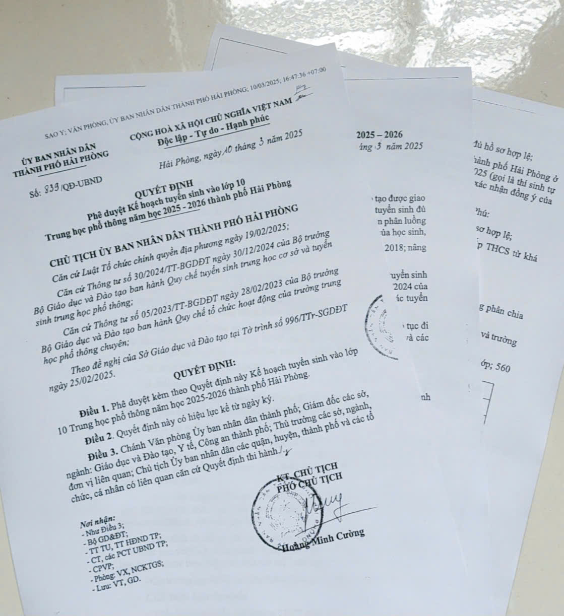 TP.Hải Phòng vừa ban hành Quyết định số 839/QĐ-UBND nhằm tuyển sinh đủ, đúng học sinh lớp 10 đối với các trường THPT; đồng thời, thực hiện phân luồng học sinh, góp phần thực hiện hiệu quả Chương trình giáo dục phổ thông 2018.