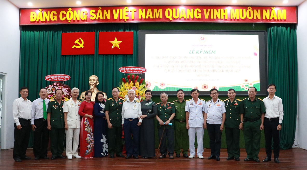 Thực hiện kế hoạch công tác năm 2020 của Hội Cựu Chiến binh (CCB) Quận 1. Được sự đồng ý của Thường trực Hội Cựu chiến binh TP.HCM và Thường trực Quận ủy Quận 1. Chiều ngày 21/12, Hội CCB Quận 1 đã tổ chức Lễ kỷ niệm Ngày thành lập Quân đội Nhân dân Việt Nam (22/12/1944 – 22/12/2020), 31 năm Ngày hội Quốc phòng toàn dân (22/12/1989 – 22/12/2020) và tổng kết phong trào thi đua “Cựu Chiến binh gương mẫu” năm 2020.