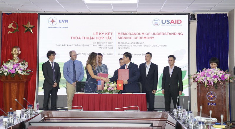 Ngày 14/12, Cơ quan Phát triển Quốc tế Hoa Kỳ (USAID) và Tập đoàn Điện lực Việt Nam (EVN) tiến hành ký kết bản ghi nhớ nhằm chính thức hóa quan hệ đối tác với mục tiêu hỗ trợ những nỗ lực của EVN trong việc mở rộng sản xuất điện mặt trời áp mái tại Việt Nam.