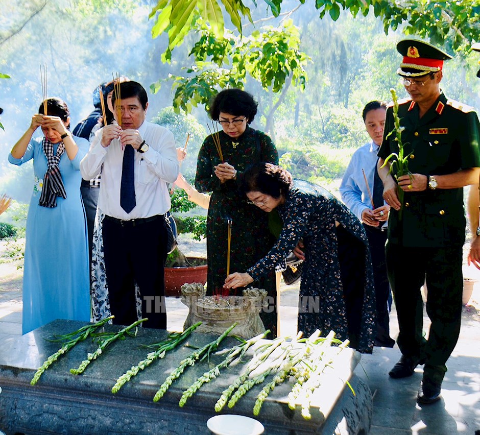 Chủ tịch UBND TP.HCM Nguyễn Thành Phong dẫn đầu đoàn công tác đến dâng hương, dâng hoa tưởng niệm tại Nghĩa trang Hàng Dương - Côn Đảo.